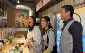 こりゃビールが進む!!と午前中からお酒のグラスをグイグイ空ける三田村さんでした😏