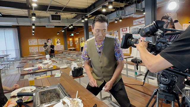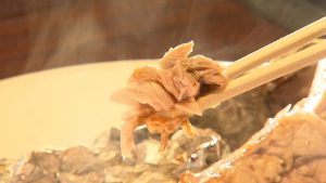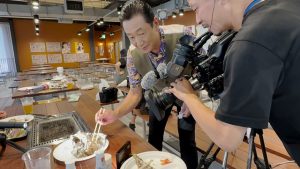 なんとその場で網を使い、炭火でサッと炙ります。豪快な炎にこのリアクション😄