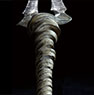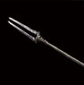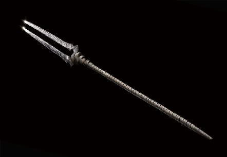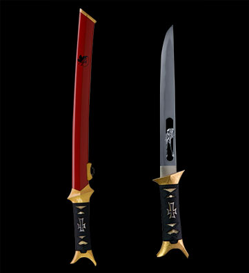 全長332cm、重さ22,200gの二又槍である。アニメでのロンギヌスの槍は、エヴァンゲリオンよりさらに長く、今回製作されたロンギヌスの槍も人間の身長の二倍近くの長さに設計された。製作を担当した三上貞直刀匠と弟子の橋本庄市氏は、従来の工房にこの槍がおさまりきらないため、工房そのものを作り直して作品を完成させた。