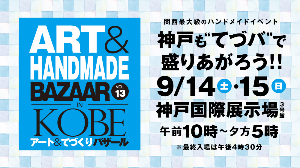 | 2024.7.22 | てづバ in 姫路終了いたしました❕ご出店、ご来場いただいたみなさま、ありがとうございました♥次回は2024年9月14日(土)・15日(日)の2日間、神戸国際展示場2・3号館にて開催いたします!またお会いできることを楽しみにしております♪詳しくはこちら |