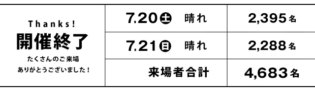 | 2024.7.17 | いよいよ開催が今週末に迫ってきましたね♪ガイドマップを公開いたしました。お気に入りのお店やワークショップをあらかじめチェックして当日の行動計画を立てておきましょう! |