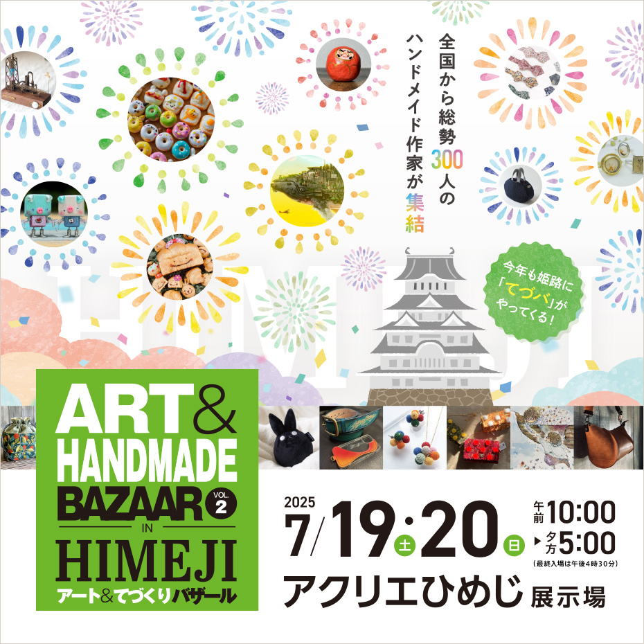 姫路で2回目の開催決定「アート&てづくりバザール IN HIMEJI VOL.2」!2025年7月19日(土)・20日(日)アクリエひめじ(姫路市文化コンベンションセンター)でお会いしましょう♪どうぞよろしくお願いします!