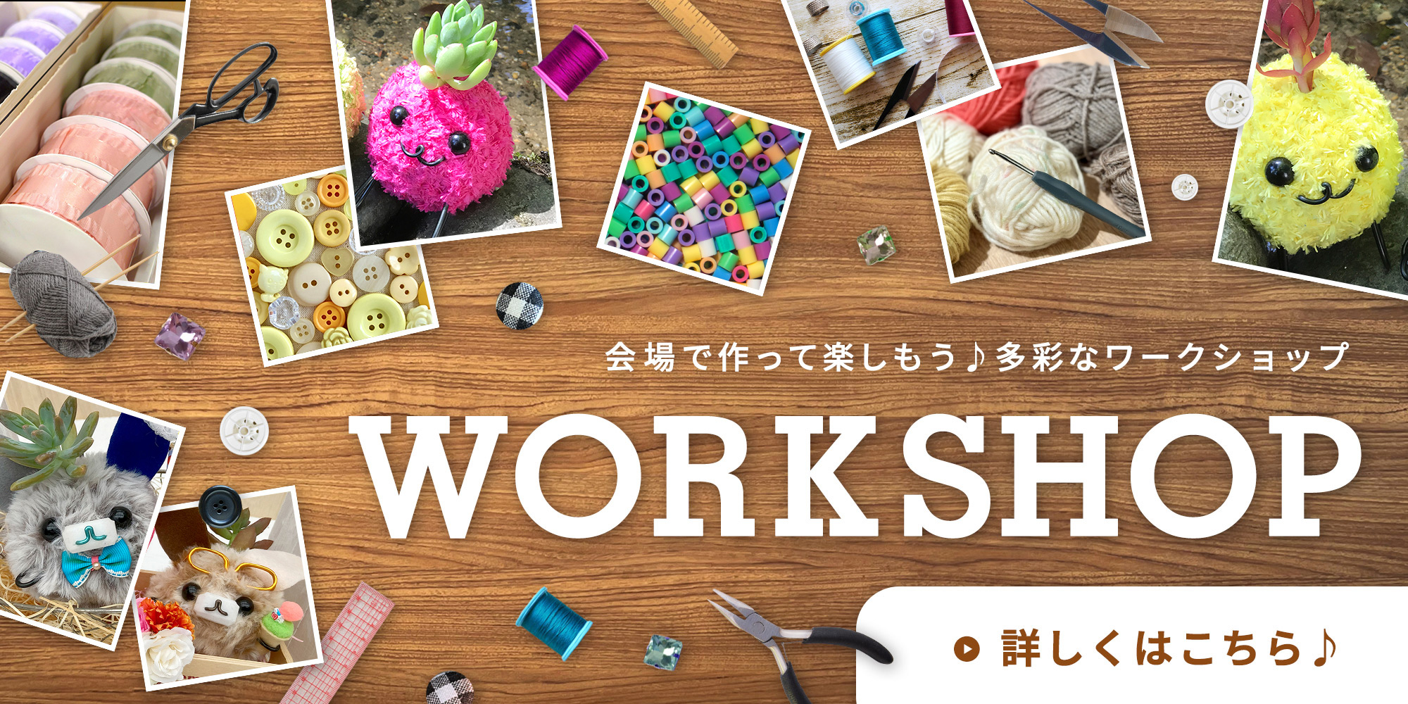 | 来場者 2026.04.09 | 多種多様なワークショップが今回も登場!開催当日、会場でお買い物だけでなく自分だけの作品作りもお楽しみください!詳しくはこちら |