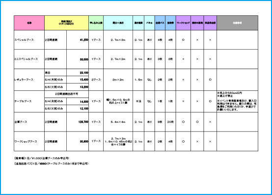 出店される方は必ずご一読ください。ブース一覧表は