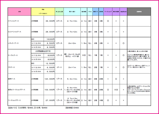 出店条件・ブース詳細