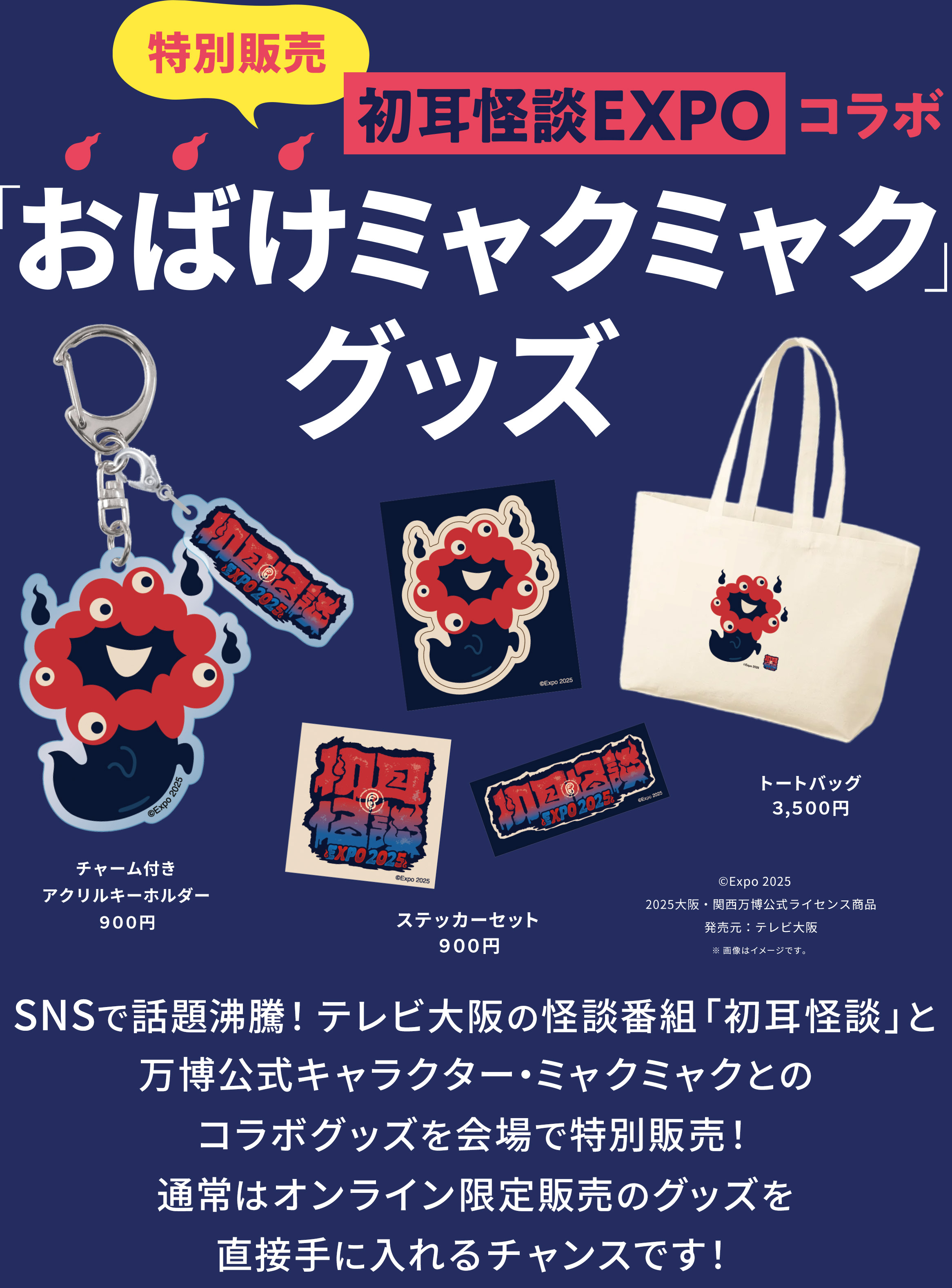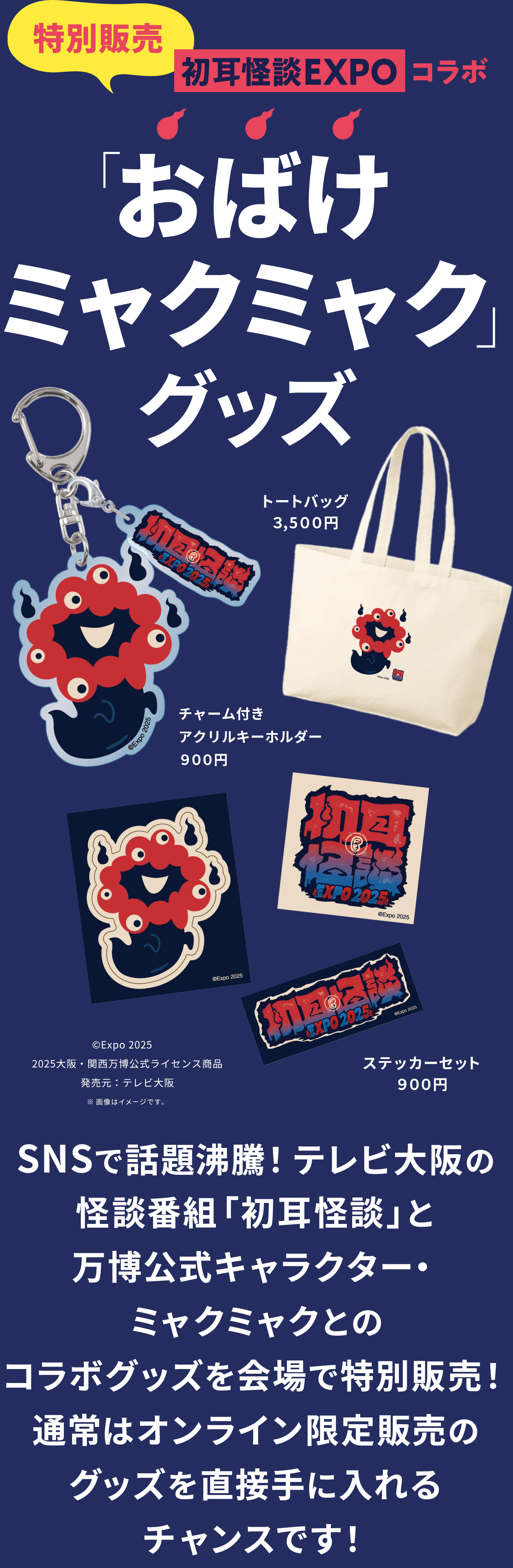 初耳怪談EXPOコラボ「おばけミャクミャク」グッズ特別販売