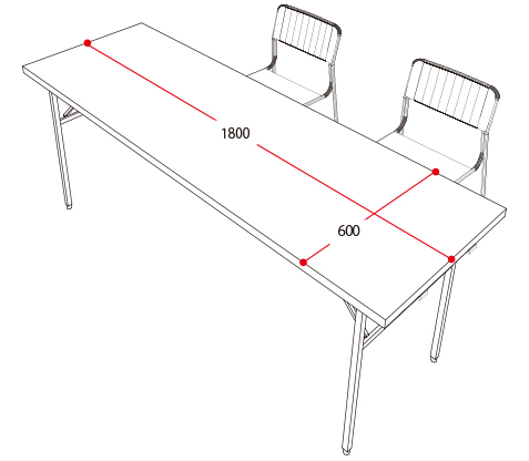 | 間口×奥行 | 幅1.8m×0.6mの机の上+イス2脚 | |