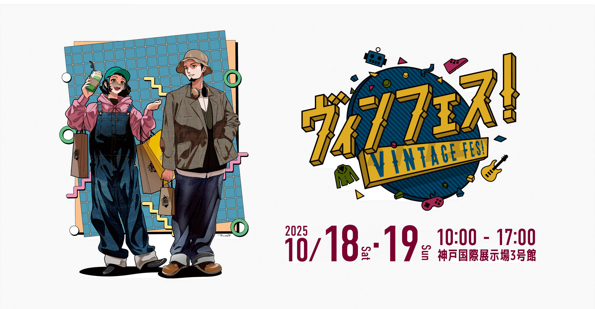 ファッション、アクセサリー、ホビー、レトロ雑貨など 全国から選りすぐりのヴィンテージショップが“神戸”に集結! お宝探し感覚で個性豊かな商品と出会える販売イベントです。