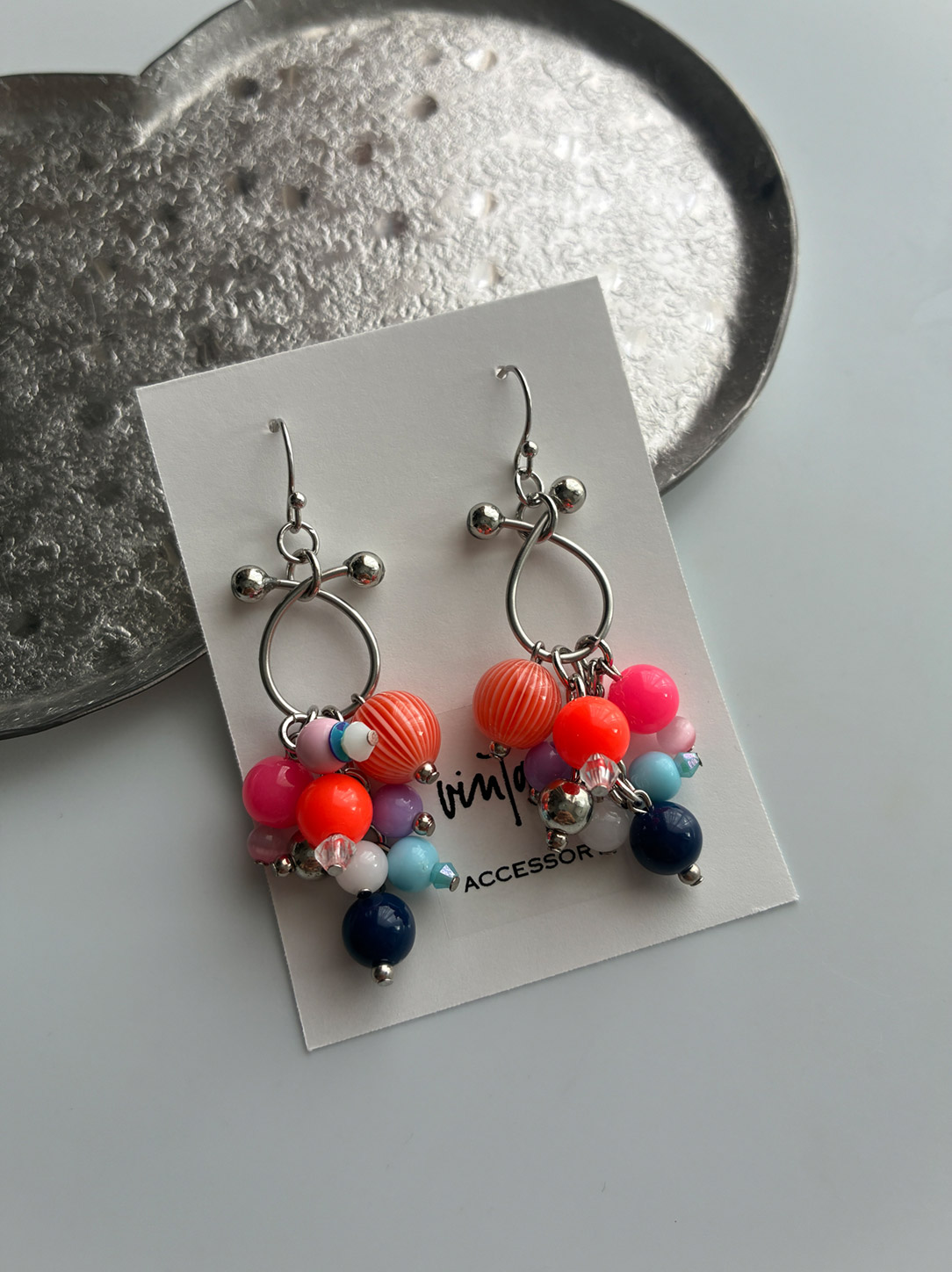 ヴィンテージビーズとステンレス製のワイヤーを曲げて作った、スタイリッシュなアクセサリー。