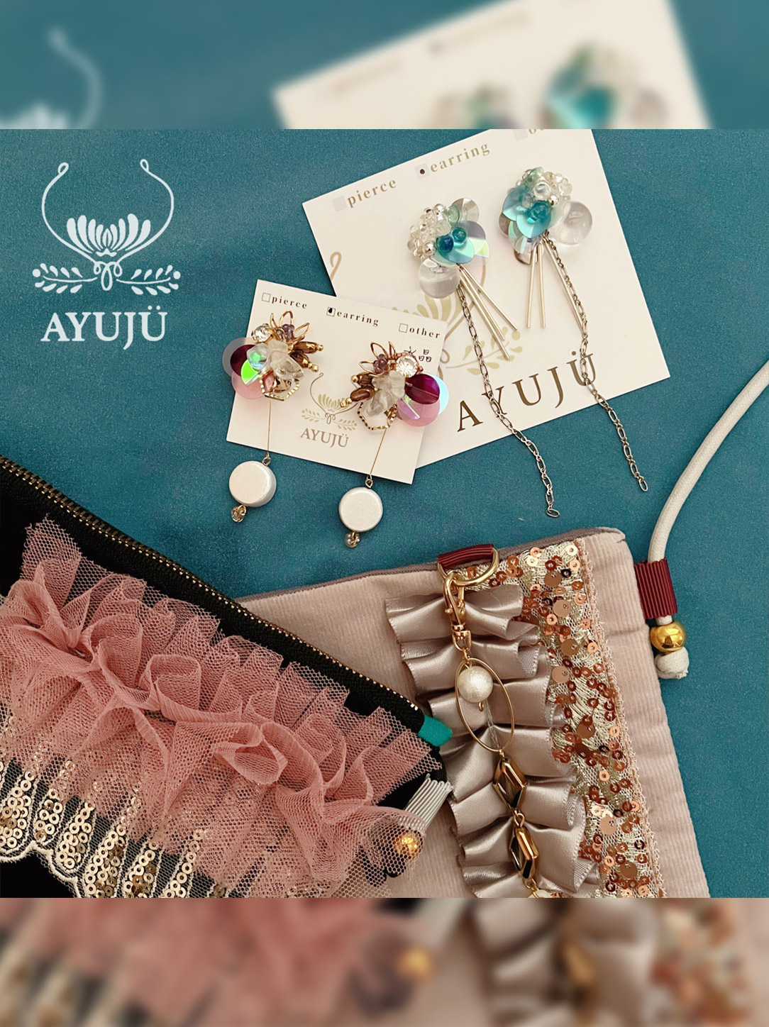 ヴィンテージ布地やレース・フリル・スパンコール仕様の布小物と刺繍アクセサリー 時を越えた新鮮なデザインをお届けします
