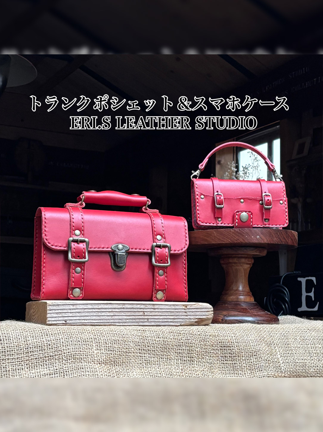 『レトロ』をテーマデザインした鞄&スマホケース。手縫いで仕上げています。