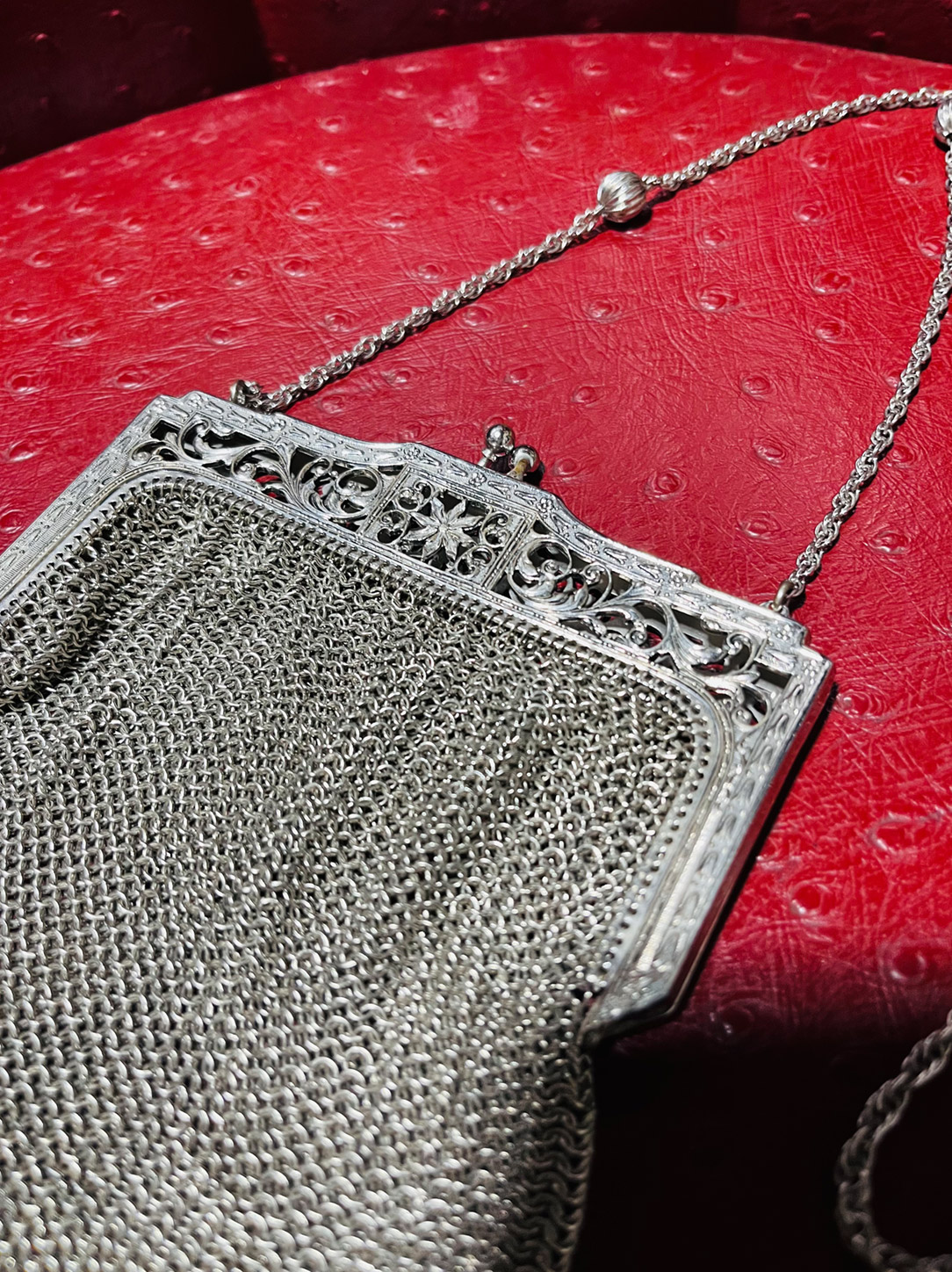 広島県山間部の屋敷から発見した1900年代前半に作られたアメリカンアンティークバッグ 細やかな鎖細工が目を引く逸品