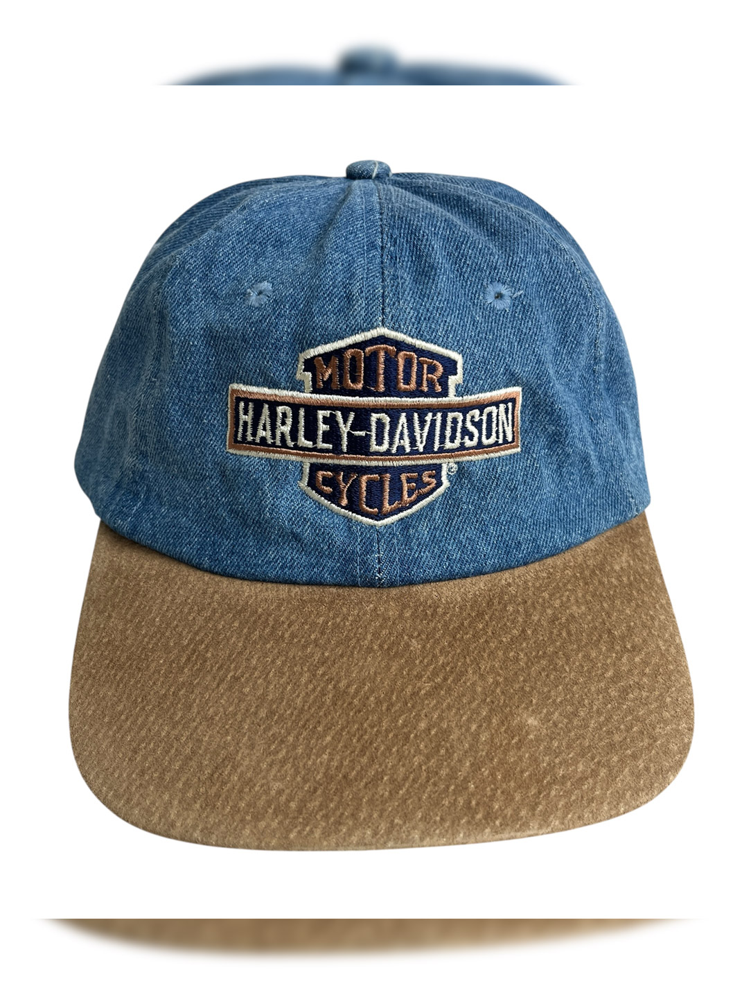 ハーレーの90年代頃のデニムキャップです!定番ロゴにツバがスエード調という少し変わった部分も魅力的な一品です!