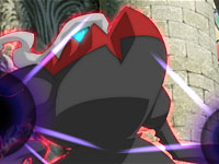 やがて不気味な影(かげ)の中から、サトシたちの前にこつぜんとそのすがたをあらわしたダークライ。未知なるポケモン、ダークライとはいったい何者なのか?ちょうどそのころ、ディアルガとパルキアが時空のはざ間ではげしいたたかいをくり広げていた。すさまじいエネルギーがぶつかり合い、切りさかれる空間。そして、そのさけ目から見えるのは、アラモスタウンであった。