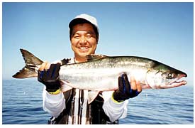またテレビの仕事で、タイ・シイラ今回のサケなど海釣りにも親しむ。