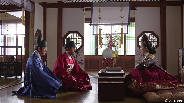 王命によって役人の登用試験が中止となる。ユン・テウォンは、彼の指示で試験に必要な紙を買い占めていたチョン・ナンジョンの商団から、どうするのかと詰め寄られる。オクニョはソン・ジホンとともに、小さな商団を一つにまとめてチョン・ナンジョンに対抗する計画を進めていた。王、明宗(ミョンジョン)は、母である文定(ムンジョン)大妃(テビ)とチョン・ナンジョンの企みを探るよう部下に命じる。