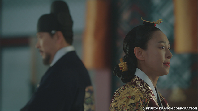 ハソンが王の代わり役だと知るソウン。イ・ギュから本物の王イ・ホンが死んだことを聞き、罪の意識を感じ王宮を出てしまう。イ・ギュは出ていったソウンの命を守るため王妃の座から降ろすよう求めるが、ハソンはソウンが必要だと連れ戻すことを決意。明国の使者が来る前に戻るとイ・ギュに約束し、ムヨンを連れて王宮を出る。ハソンの留守中イ・ギュは、王は王妃に出ていかれて乱心したと噂を流すが、大妃に王の不在を知られ、玉璽と兵符を渡せと迫られる。