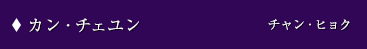 元の名はトルボクといい、世宗の義父であるシム・オンの家の奴婢。父が無念の死を遂げ、その元凶が国王であると思い込む。北方で武官として身を立て、師匠イ・バンジから武芸を伝授される。カン・チェユンと名を変え、国王イ・ドへの復讐心を胸に兼司僕として王宮に入るが、イ・ドから連続殺人事件の捜査を任される。