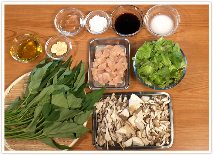 - きのこ(しめじ・エリンギ・舞茸)を入れる
