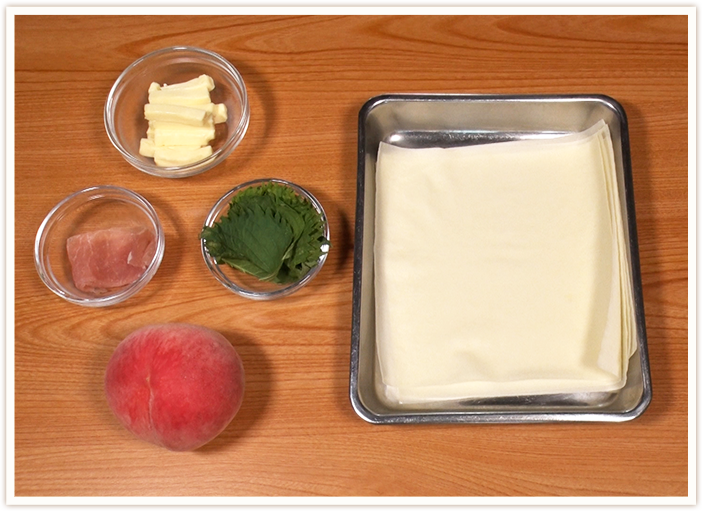 ※ハーブとの相性○ バジルでもOK - 生ハム・チーズ・桃を入れて巻く