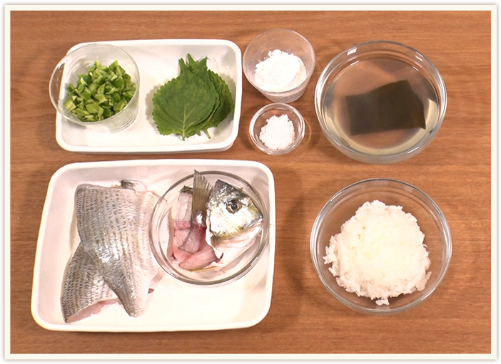 - 昆布だしに塩・魚のアラを加え 20分煮込む