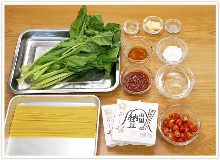 ※納豆の粘りがとろみに! - 小松菜を入れる