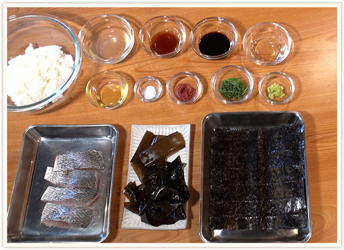 - ワカメとごはんを混ぜて盛りつけ