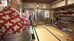 着物を着て古都奈良を散策体験できる着物レンタルショップ。常時100種類以上の着物がずらりと揃う。