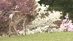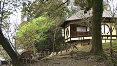 奈良公園内にある明治四十年創業の全室離れの料理旅館。点在する数寄屋風の離れには 時折シカも遊びにやってくる。