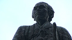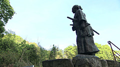 台座を含めた高さは約4メートル。険しい表情を浮かべ、全国的にも珍しい前傾姿勢の龍馬の姿を描いている。