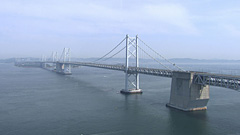 児島と坂出市の間を6つの橋で島づたいに結ぶ全長10kmの橋で、約10年の歳月をかけ昭和63年に完成。世界最大級の橋梁が連なる姿は壮観。
