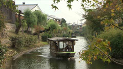 昔ながらの酒蔵が立ち並ぶ風景を舟から堪能できる