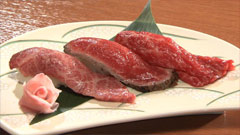 地元でも人気の近江牛専門店。三種類 の握り寿司が楽しめる