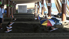 雨天時でも利用できる屋根つきの砂むし場がある。