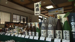 赤穂ならではのお酒がところ狭しと並ぶ。赤穂の塩で作られた