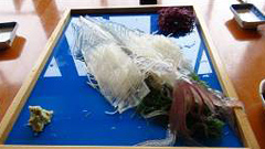 イカ活き造りのゲソはお好みで天ぷらか塩焼きにできる。