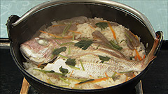 鯛を一尾丸ごとご飯と一緒に炊き上げる
