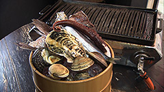 新鮮な魚介をグリルで焼いて頂くことができる。