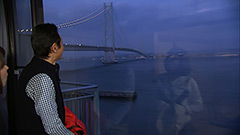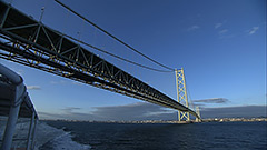 船上からは大迫力の明石海峡大橋を望むことが出来る。