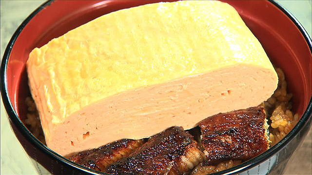 名物は、だし巻き玉子の様な大きなきんし玉子がのったうなぎ丼。