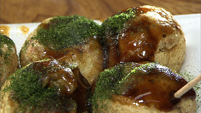 さくらエビの香りがこおばしい、ビールにピッタリのたこ焼きです。