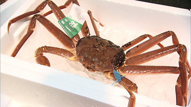 ブランドの橋立ガニが競り落とされ、活気に溢れています。