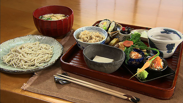ランチのメニューは蕎麦で作った料理や野菜が盛りだくさん