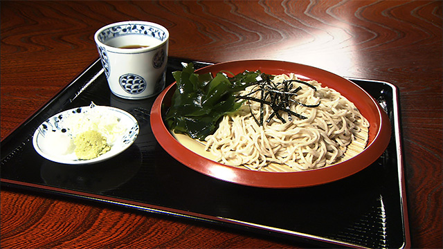 ざるそばに鳴門産生わかめをそえた 「海藻そば」が