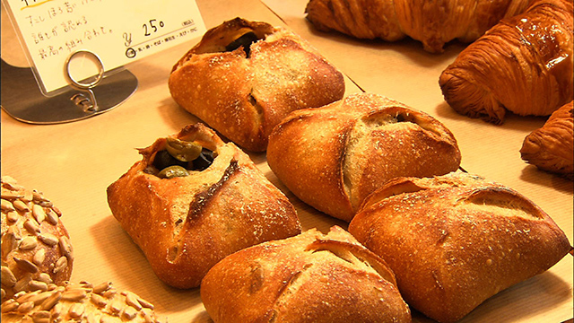 こだわりの焼き立てパンが毎日お昼頃に並ぶ。