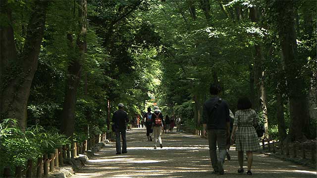 参道には原生林が生い茂り、神秘的な空気に包まれています。