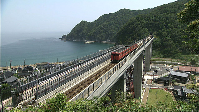 餘部駅とトンネルを繋ぐ、かつて日本一の高さを誇った鉄橋で日本海を望む絶景スポット。
