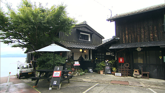 余呉湖畔に佇む料亭。