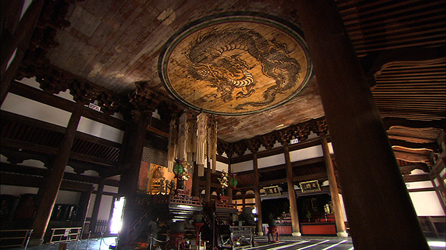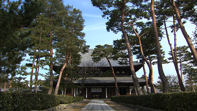 室町幕府三代将軍・足利義満が創建した臨済宗相国寺派大本山。慶長10年(1605)に豊臣秀頼が再建した日本最古の法堂(重文)には、狩野永徳の子・光信(みつのぶ)筆の天井画「蟠龍図(ばんりゅうず)」があり、通称「鳴き龍」として知られる。