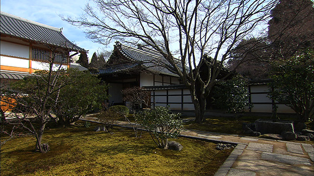 慶長3年(1598)、西笑承兌(せいしょうじょうたい)和尚が、豊臣秀吉の追善のために創建した相国寺の塔頭寺院。室町幕府第10代将軍・足利義稙(よしたね)や西笑和尚、獨園和尚の肖像画や書などの寺宝の他、幕末の剣や書の達人として知られ、獨園和尚に参禅した、山岡鉄舟の書なども公開される。